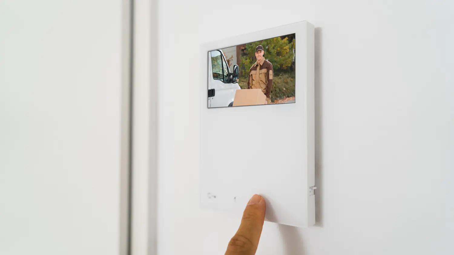 Comunique e veja quem está à porta da sua casa, através de um intercomunicador com câmara e ecrã. Pode ser integrado com o sistema de abertura da porta, permitindo abrir a porta remotamente, com um botão, com um código ou com uma impressão digital.